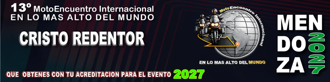 El 05 / 06 y 07 de febrero 2027 Mendoza se convertirá en el epicentro del Moto Turismo Mundial, cuando se lleve a cabo la decima tercera edición del MotoEncuentro Internacional en lo Mas Alto del Mundo - Cristo Redentor, 2027, que tendrá la participación de Motociclistas distintos países del mundo.